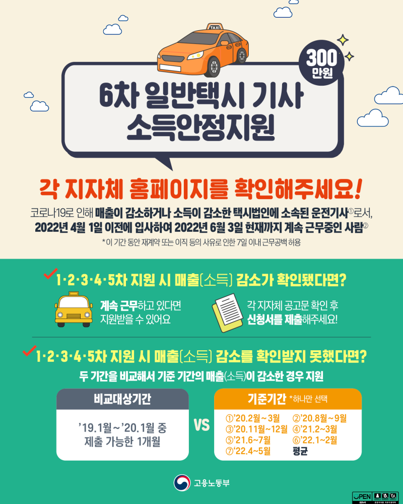 2022년 6월 3일부터 코로나19 재난지원금으로 6인치컴퍼니택시방역 지원을 받는 택시기사는 소득안정기금을 신청할 수 있습니다. 코로나19 위기로 일반 택시기사를 사업자로 잠정 지원한다. 지원으로는 기존 5차 지원금과 마찬가지로 17개 광역자치단체와 함께 6차 지원금을 시행한다.응모자